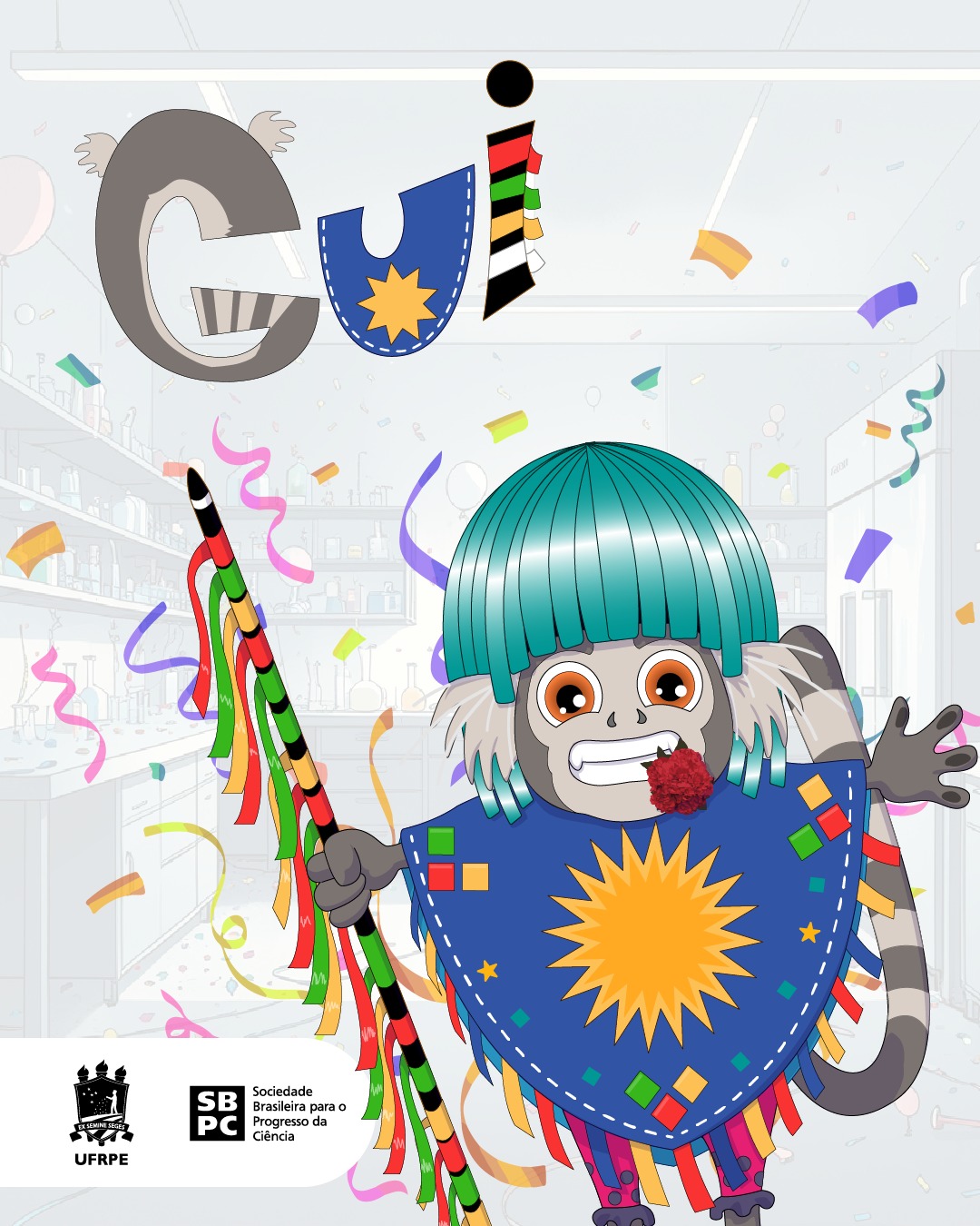 Batizada de Gui, a mascote é um macaco sagui paramentado com o traje típico do “Caboclo de Lança”, uma criação do servidor técnico-administrativo da UFRPE, Thyago Silva Lacerda.