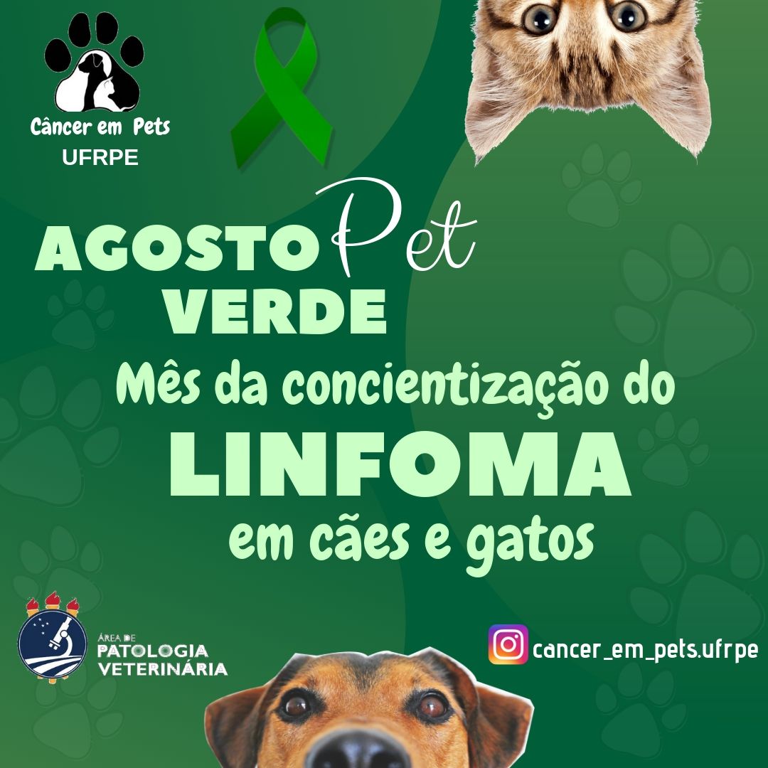 No dia 21 de agosto (quarta-feira), o projeto de extensão Câncer em Pets estará realizando o Agosto Pet Verde - Campanha de conscientização sobre o Linfoma em cães e gatos. As atividades vão das 8 às 17h, em frente ao Hospital Veterinário da UFRPE (HOVET). A proposta de conscientização é promovida pela Área de Patologia Veterinária. O evento é gratuito e terá conversas com tutores, divulgação de produtos e distribuição de brindes.