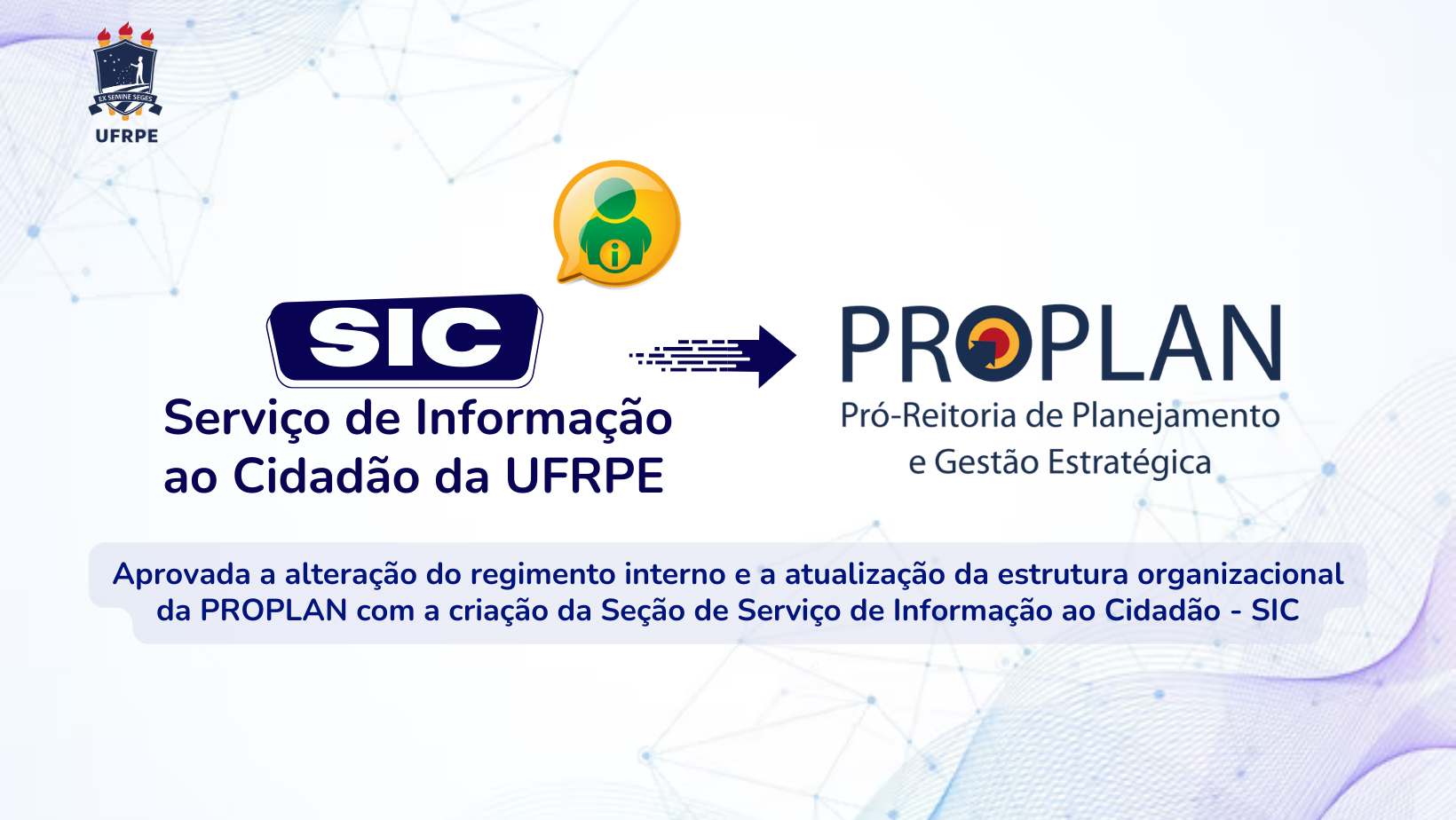A nova seção incorpora todas as atividades do Serviço de Informação ao Cidadão - SIC da UFRPE às competências gerenciadas pela PROPLAN a partir da publicação da resolução nº 363/2023 do CONSU, de 14/08/2023.