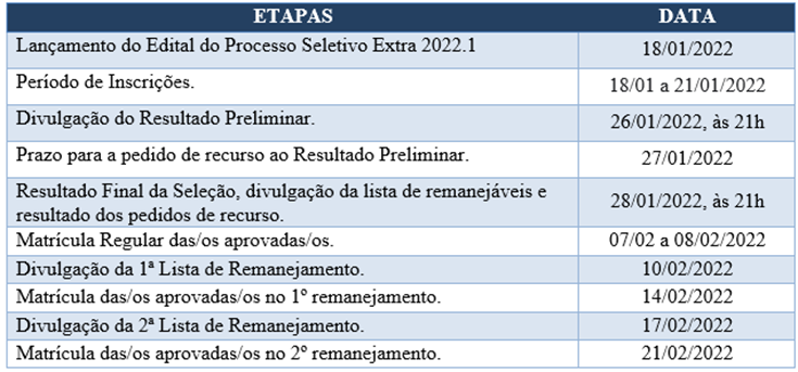 CRONOGRAMA DO PROCESSO SELETIVO 2022.1