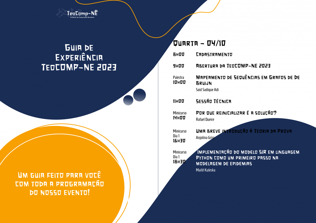 A TeoCOMP-NE 2023 contará com um corpo de palestras e minicursos oferecidos por docentes de universidades federais, trazendo um panorama da pesquisa em tópicos relevantes da Teoria da Computação. Também contará com a apresentação de contribuições submetidas pela comunidade, através de chamada de trabalhos. O evento será híbrido, tendo um componente presencial no auditório do DC, com transmissão e possibilidade de participação online no canal de YouTube do DC. Mais informações serão divulgadas no site do evento: https://teocompne23.