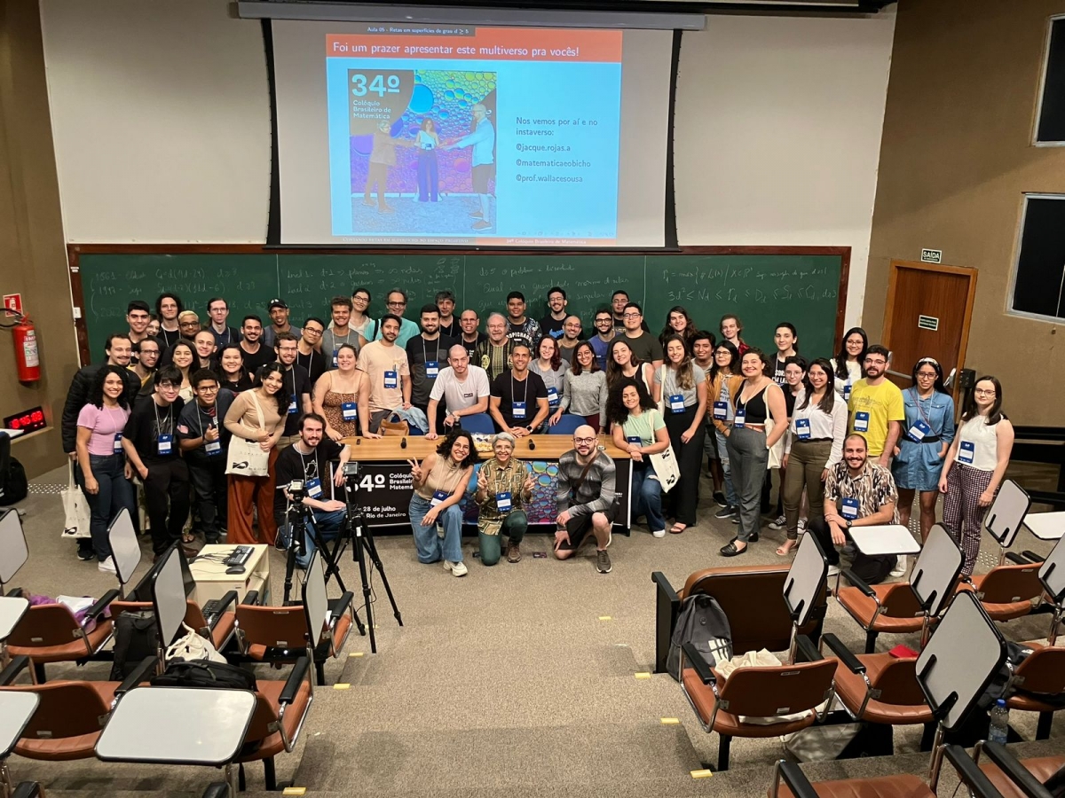 Entre os dias 24 e 28 de julho, docentes e discentes egressos do curso de Licenciatura em Matemática da Universidade Federal Rural de Pernambuco (DM – UFRPE) participaram do 34º Colóquio Brasileiro de Matemática, o maior evento científico de Matemática no Brasil. O evento foi um sucesso, atraindo uma significativa presença da comunidade matemática de todo o país.