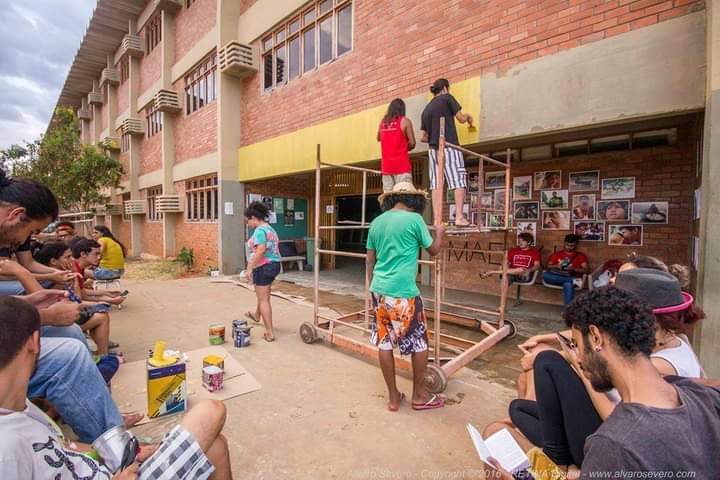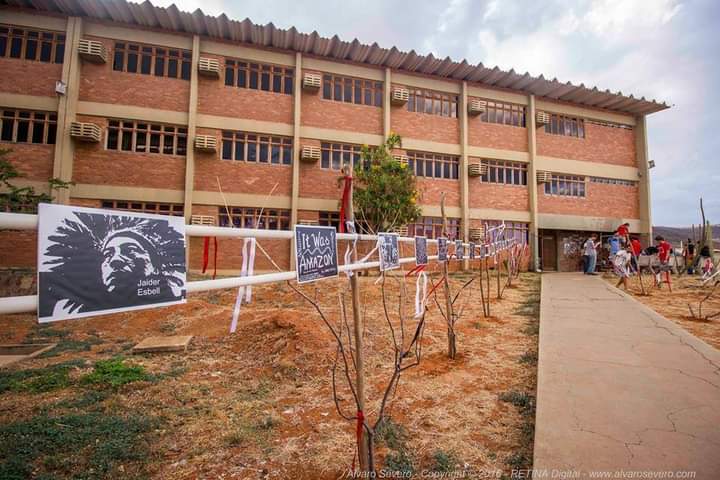Para honrá-lo, gostaríamos de partilhar, mais uma vez, trechos dessa experiência tão transformadora para nós. Em 2016, Jaider esteve conosco em residência artística e deixou lições para uma vida. Uma delas é de que uma revolução só se faz percorrendo cada canto desse território. Quanta boniteza aprendemos montando a exposição It was Amazon, ao ar livre, em frente ao bloco 3 da nossa unidade acadêmica.