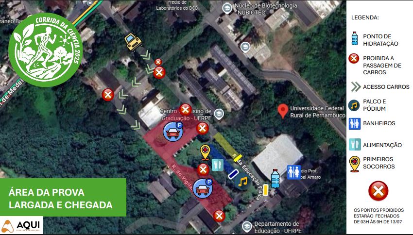 A Universidade Federal Rural de Pernambuco (UFRPE) informa que, em virtude da realização da Corrida da Ciência 2025, no próximo domingo, 13 de julho, o acesso de veículos ao campus sede estará temporariamente restrito em alguns pontos.