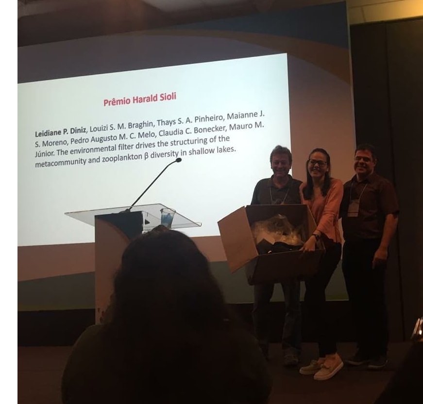 Com a pesquisa O filtro ambiental direciona a estrutura da metacomunidade e a diversidade β do zooplâncton em lagos rasos, realizada no campus Dois irmãos, em Recife, a egressa da UFRPE, Leidiane Pereira Diniz, recebeu o Prêmio Harald Sioli de Limnologia. O artigo é oriundo de uma pesquisa realizada entre os anos de 2013 e 2016, pelo Laboratório de Ecologia do Plâncton (Leplanc/DB/UFRPE), coordenado pelo professor Mauro de Melo Júnior. Leidiane é bacharel em Ciências Biológicas pela Unidade Acadêmica de Serra Talhada (UAST/UFRPE) e mestra pelo Programa de Pós-graduação em Ecologia (UFRPE/Recife). A premiação aconteceu durante o XVII Congresso Brasileiro de Limnologia, que ocorreu em Florianópolis. Este é o maior prêmio em Limnologia do Brasil, dado a jovens pesquisadores.