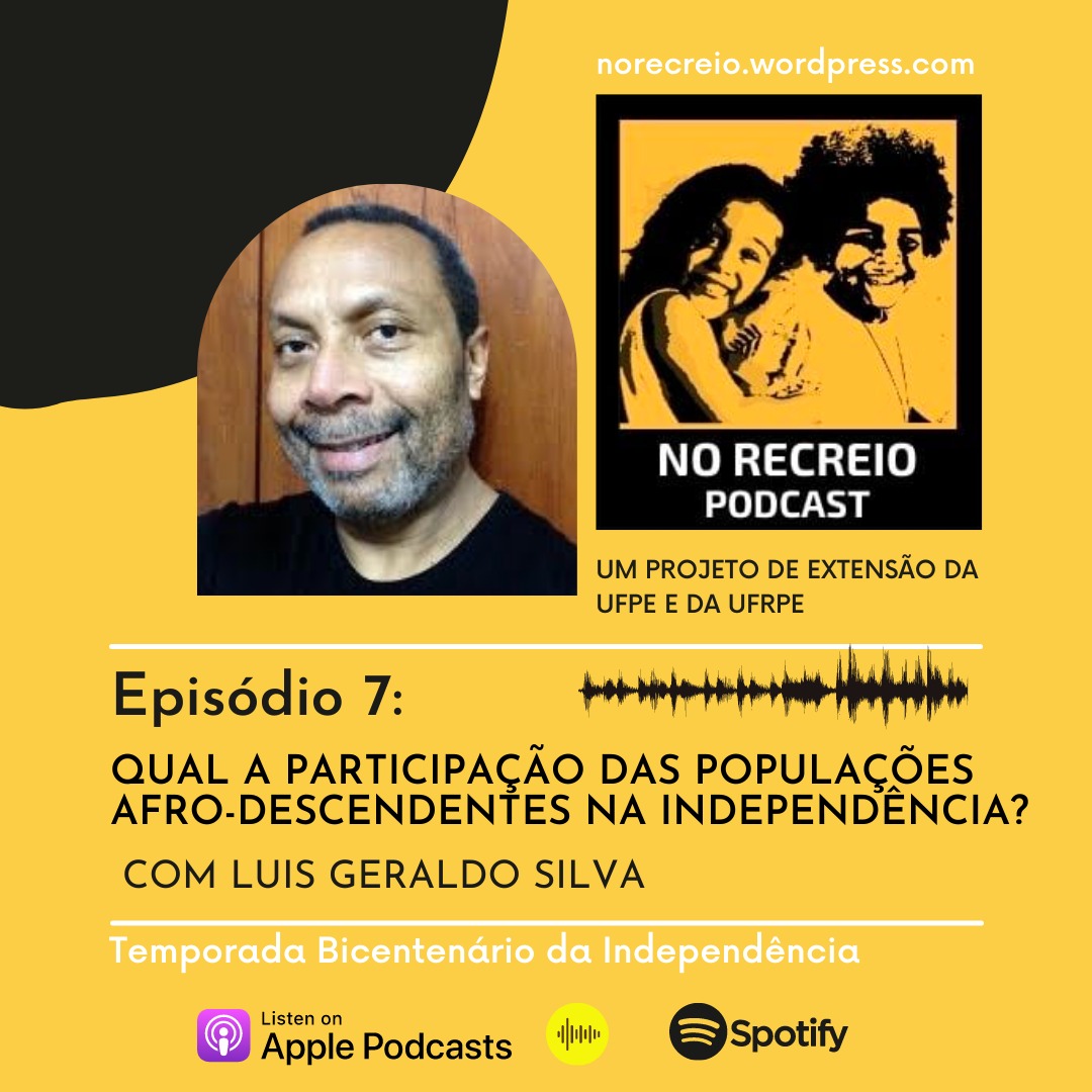 A equipe do Podcast No Recreio convidou o Professor Dr. Luís Geraldo Silva (UFPR) para responder a pergunta da professora Carolyne do Monte Batista de Souza (mestra em Ensino de História pela UFPE e docente da rede privada de João Pessoa), que ficou bastante motivada pelos eventos analisados no episódio passado que abordou a atuação dos povos indígenas na Independência. A professora Ms. Carolyne nos perguntou sobre a participação das populações afro-descendentes na Independência do Brasil. Nunca é demais reforçar o registro da informação de que a maioria da população brasileira é afro-descendente.