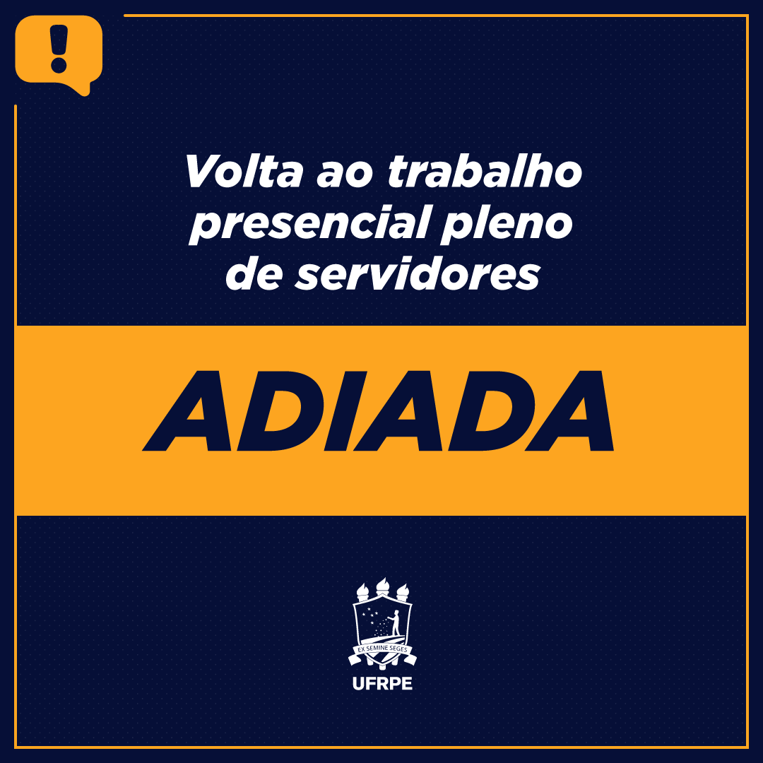 A Gestão Superior da Universidade Federal Rural de Pernambuco, em virtude do agravamento do quadro sanitário no Estado de Pernambuco, amplamente divulgado por todos os meios de comunicação, informa que a volta ao trabalho presencial pleno dos servidores Instituição será adiada do dia 17/01/2022 para o próximo dia 02/02/2022.